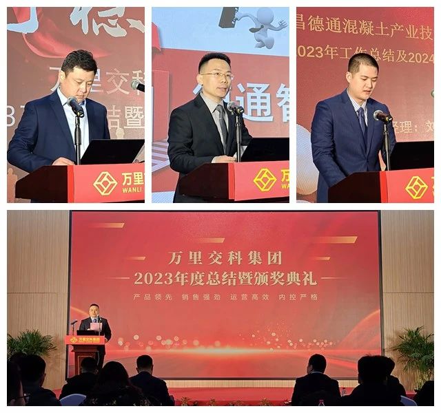 集團執(zhí)行總裁兼萬里交科股份董事長李丹、德通科技股份總經(jīng)理孟超、德通混凝土產(chǎn)業(yè)技術(shù)研究院有限公司總經(jīng)理劉其昂分別代表集團三大業(yè)務(wù)版塊作《2023年度工作總結(jié)和2024年度工作規(guī)劃》報告,集團副總裁張培主持會議。