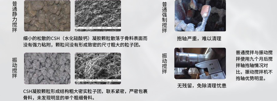 傳統(tǒng)攪拌下攪拌時(shí)間一般在50s左右,而振動攪拌下攪拌時(shí)間在35-40s左右,產(chǎn)出效率大幅度提升。